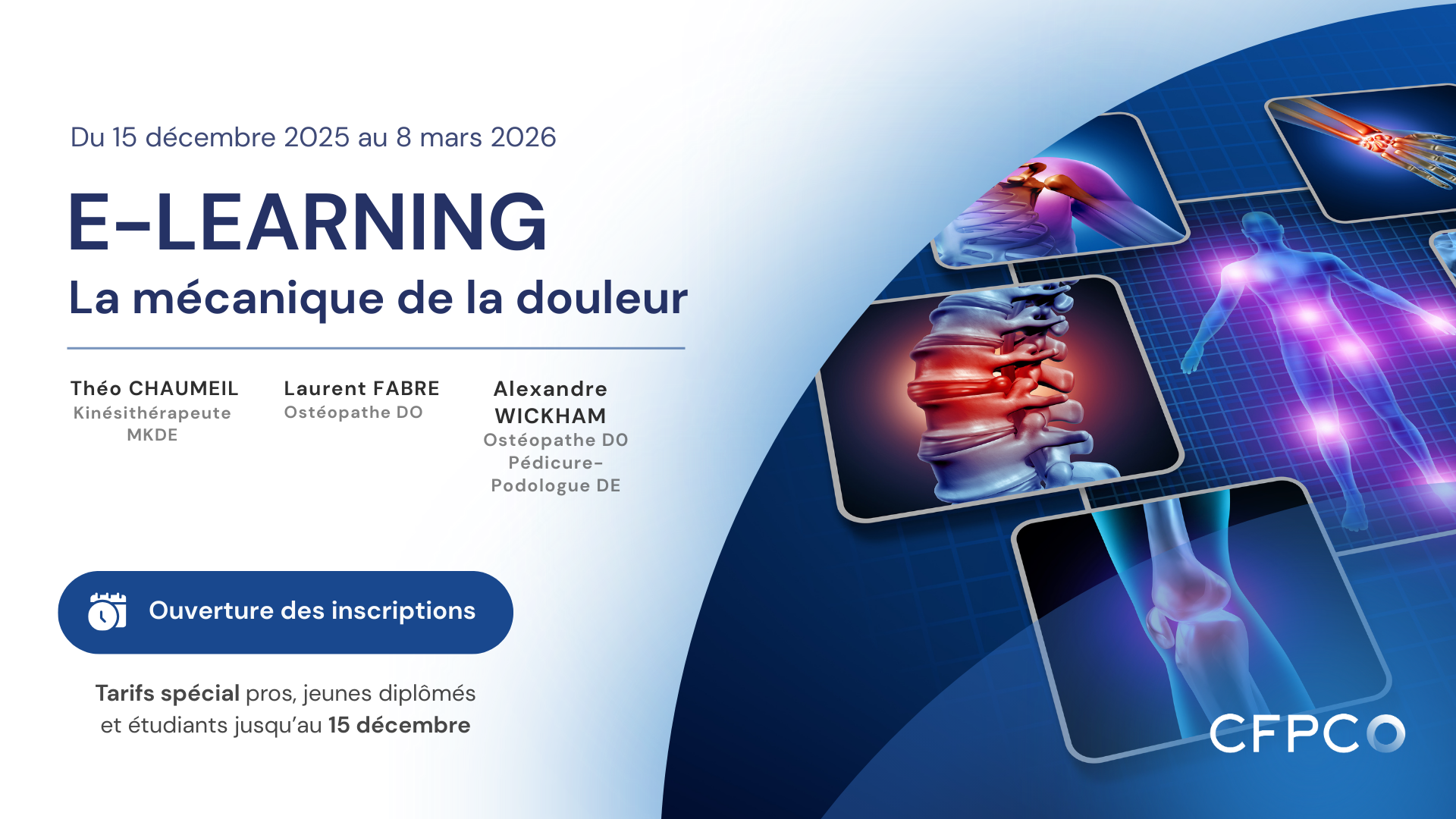 Bienvenue dans cette nouvelle édition du E-learning "Mécanique de la Douleur", qui explore les mécanismes et les approches pour mieux comprendre et gérer la douleur.