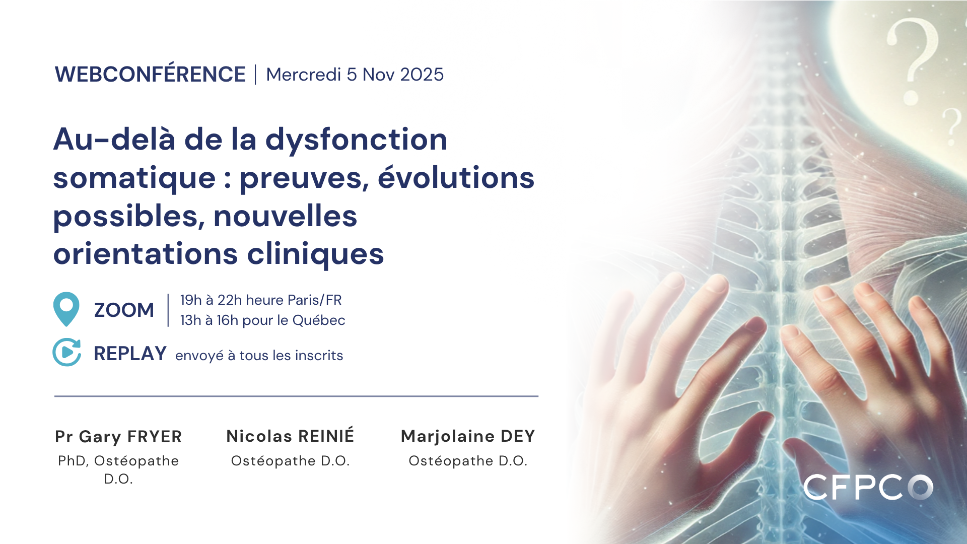 Webconférence - Au-delà de la dysfonction somatique : preuves, évolutions possibles, nouvelles orientations cliniques - Pr Gary Fryer, DO
